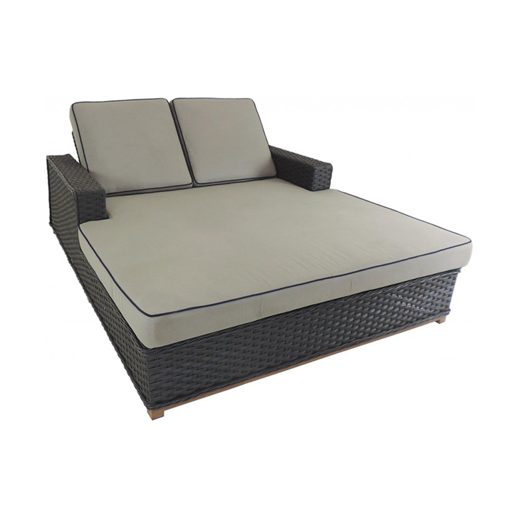 The Moorea Double Chaise is a luxurious place to relax in the sun. Two individual, adjustable headrests make it an ideal chaise for two people. There is room to be separate or room to snuggle and snooze. The broader flat-weave of this wicker is set off by faux teak accents and contrasting, corded-edge details. The simple lines of the frame construction maximize seating space and define sitting areas with grace and style. The Moorea Collection is fancy without being fussy.