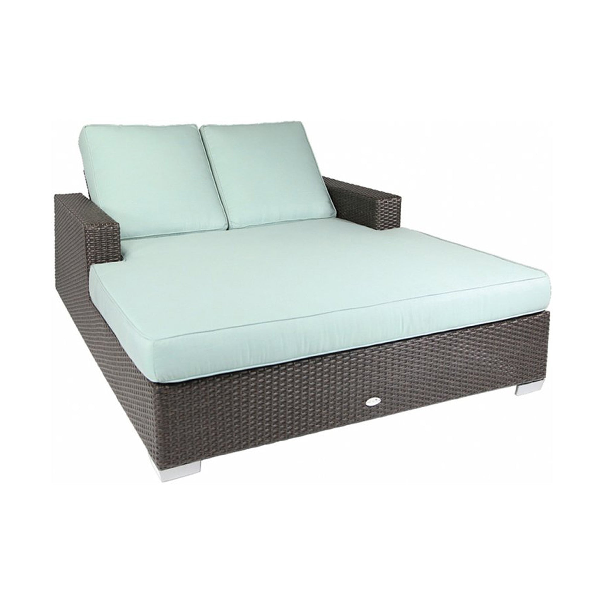 The Signature Double Chaise Lounger creates a sleek and sophisticated presence around any pool or lawn. It has two headrests that operate independently. Functional low arms provide perfect perches for drinks or snacks. Plush cushions round out this collection with comfort and softness. This transitional piece utilizes a flat-weave wicker and dark stain that bring weight and permanence to the room.