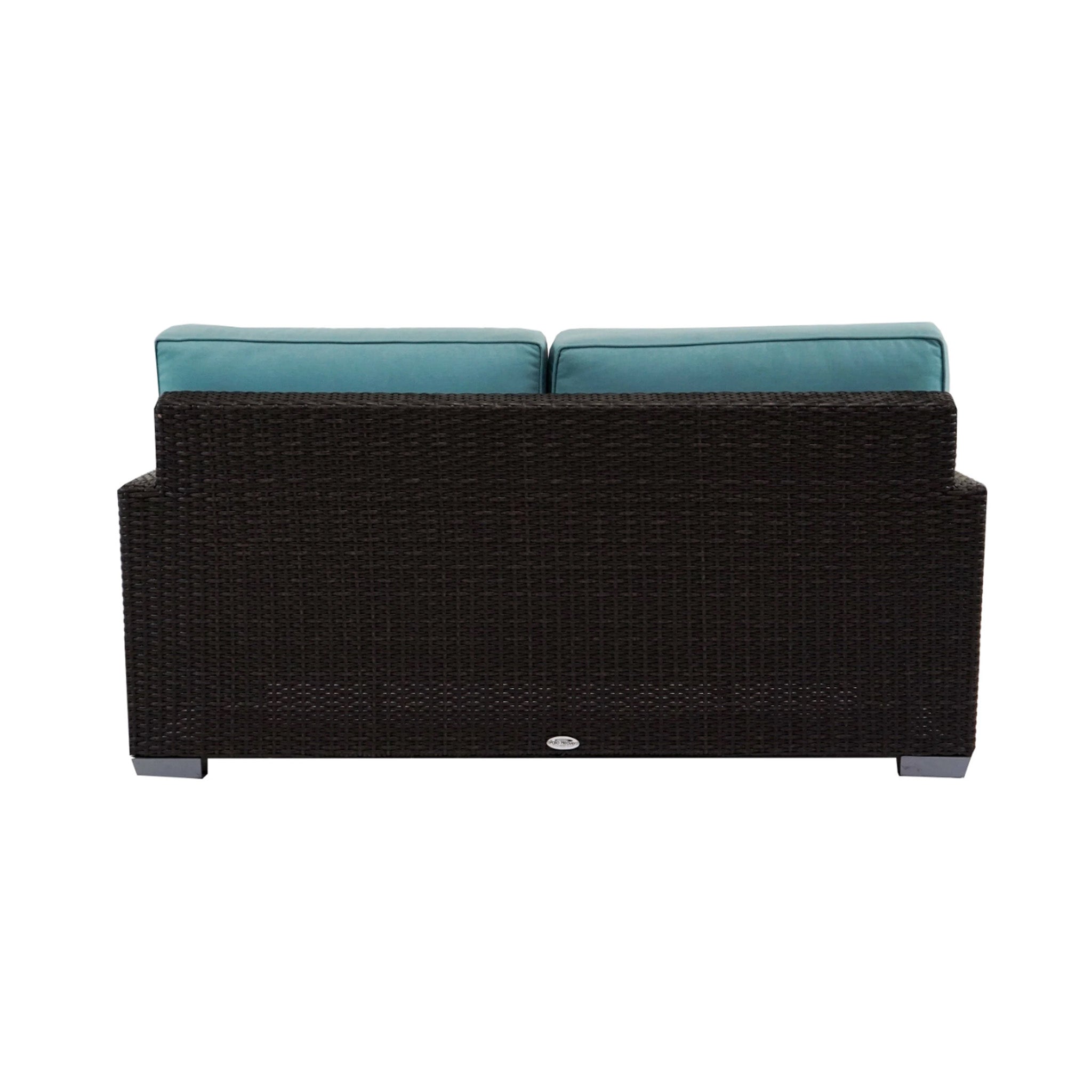 The Signature Loveseat is a nicely scaled loveseat that provides ample seating for most body types. The broad, low arms and flat-weave wicker provide perfect perches for drinks or snacks. Plush T-cushions round out this piece with comfort and softness. The dark stain and simple lines of this collection give weight and permanence to any space.